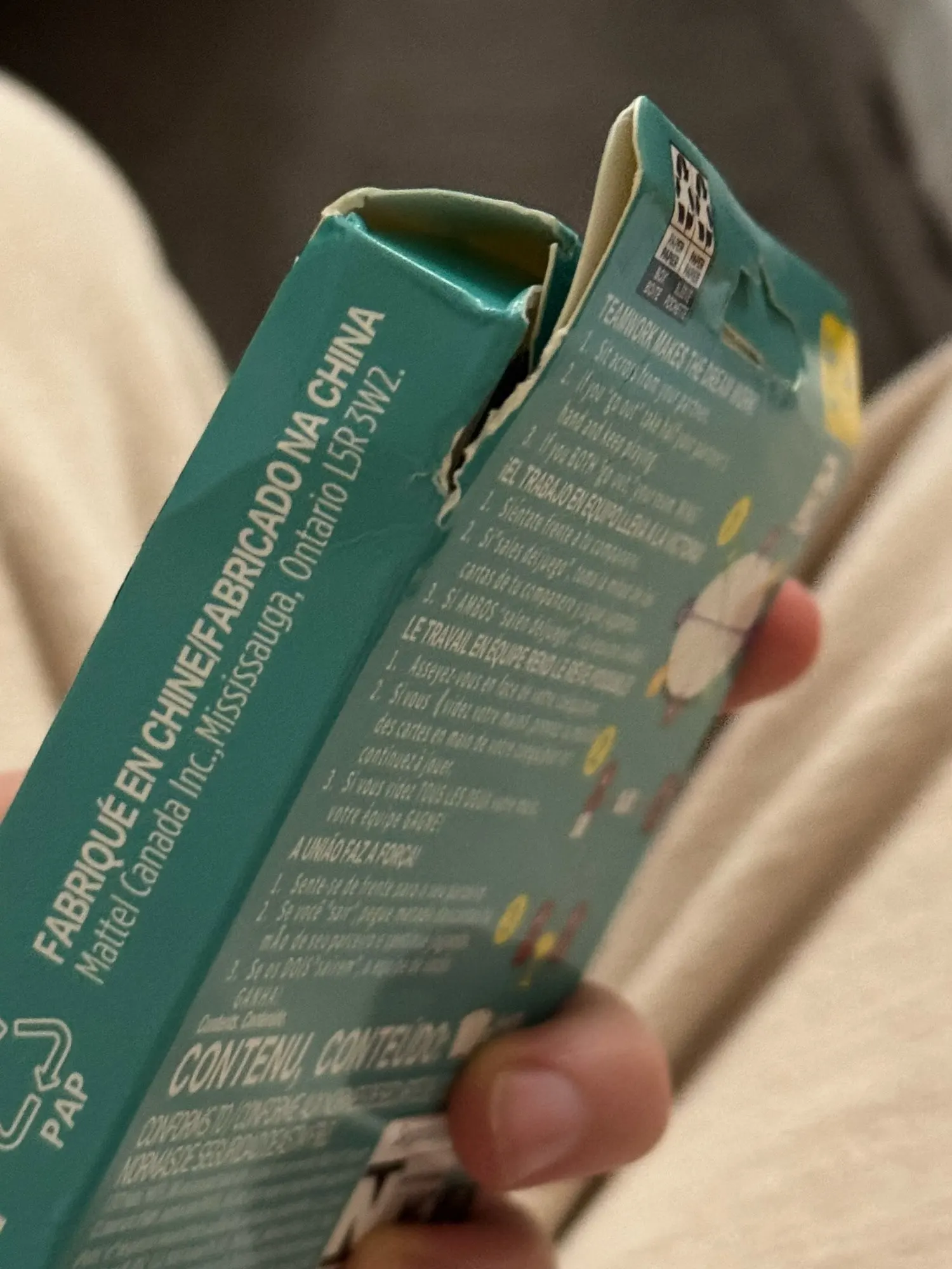 Aparte de que la caja estaba abollada en algunos lugares, lo cual es decepcionante, el resto estaba en buen estado. Viene con instrucciones y 3 paquetes de cartas.